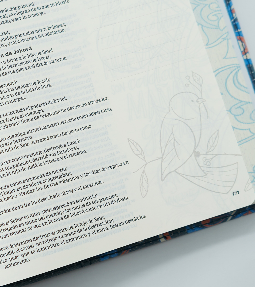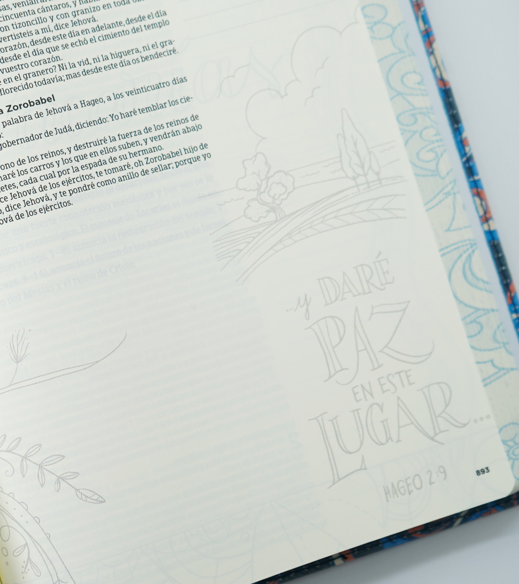 La Biblia de apuntes, Edición ilustrada, combina 2 tendencias de hoy: El uso de la Biblia como diario y como libro de colorear para adultos. Con ilustraciones únicas incluidas en cada página, lectores, ilustradores y personas que toman notas, tendrán la oportunidad de aprender a adentrarse el texto bíblico de una manera novedosa.