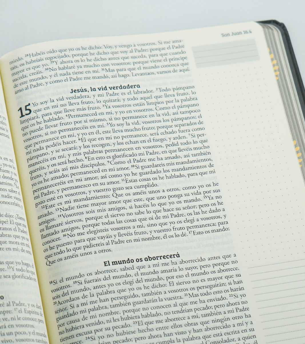 – Diseño Funcional: Su diseño intuitivo facilita la lectura y la escritura, permitiéndote sumergirte en la Palabra de Dios sin distracciones.