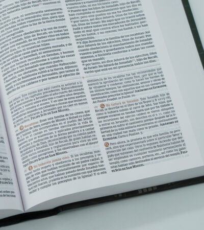 La Biblia incluye las palabras de Cristo en rojo, tablas, gráficos y cronologías que ayudan a visualizar el entendimiento del texto, en conjunto con una serie de 50 recursos o estudios sobre pasajes de la Biblia.