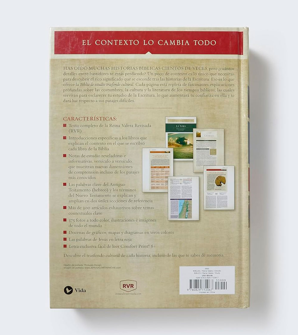 Has escuchado muchas historias de la Biblia cientos de veces, pero ¿cuántos detalles te estás perdiendo? A veces, solo se necesita un poco de contexto para descubrir el rico significado detrás de las historias más familiares de la Escritura. Eso es lo que proporciona la Biblia de estudio trasfondo cultural (RVR). Cada página de esta Biblia de estudio está repleta de información experta sobre las costumbres, la cultura y la literatura de los tiempos bíblicos.