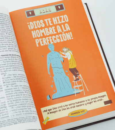 Presentamos la nueva Biblia de Promesas para niños diseñada especialmente para los preadolescentes de 9 a 12 años. 16 páginas con ilustraciones representativas de hombres admirablesde la Biblia, en el estilo y con los colores favoritos de esta edad.16 páginas de enseñanzas acerca de temas relevantes, escritas en un lenguaje claro y diseñadas tipo «bloques», lo que hace que la lectura sea más ágil.