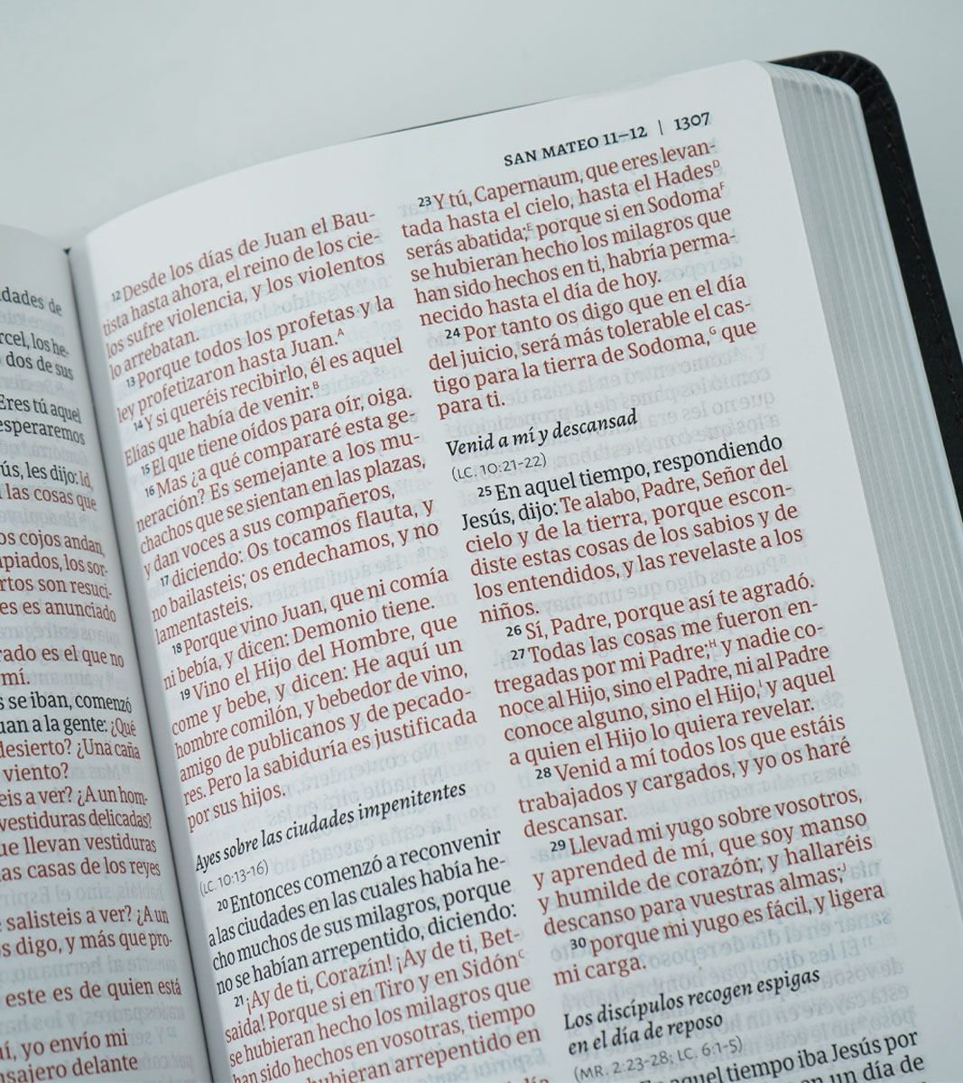 La RVR 1960 Biblia del ministro edición ampliada es ideal para usarla en el púlpito por su diseño práctico, fácil lectura y extensas notas auxiliares. Esta nueva edición cuenta con una letra más grande de 12 puntos, además de un Manual del ministro con 40 % más material, incluyendo bosquejos de sermón para ceremonia de bodas, la Cena del Señor, el culto fúnebre y la celebración de XV años. El Manual, colocado en el centro y con una fuente grande y fácil de leer, es una herramienta indispensable para una variedad de ocasiones especiales. Contiene también ayudas para leer y entender los géneros literarios de la Biblia. Disponible en la versión RVR 1960, una traducción tradicional y verdadera.