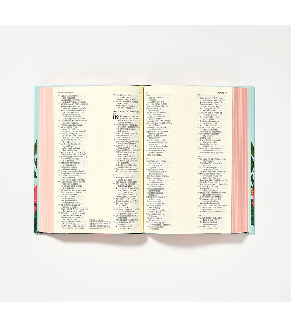 La Biblia Edición Artística Reina Valera 1960 con un diseño de cubierta pintado a mano. El interior ha sido compuesto esmeradamente con la letra exclusiva fácil de leer Comfort Print® y márgenes con líneas ligeras para tomar notas o dibujar.