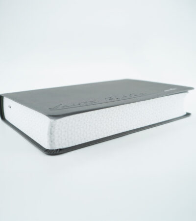 Su encuadernación de lujo en piel gris, con página para dedicatoria, y cinta marcadora, hacen que la Santa Biblia RVR 1960 sea ideal para el uso personal o para regalo. Con letra gigante de 14 puntos, y las palabras de Cristo destacadas en rojo, la Biblia incluye la esencia de Tierra Santa con preciosas imágenes a todo color, que nos invitan a orar por el pueblo de Israel.