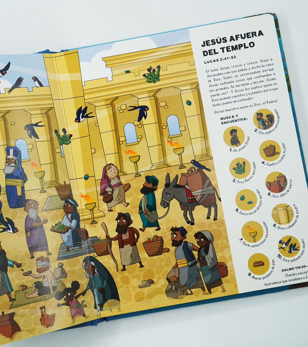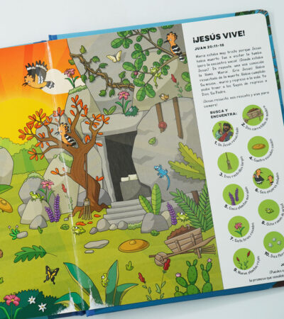 Este hermoso libro ilustrado de Busca y encuentra está repleto de tus historias favoritas de la vida de Jesús. Hay un montón de horas de diversión y muchas cosas por buscar: desde pececitos escurridizos, relámpagos deslumbrantes y ovejas lanudas hasta una tumba vacía.