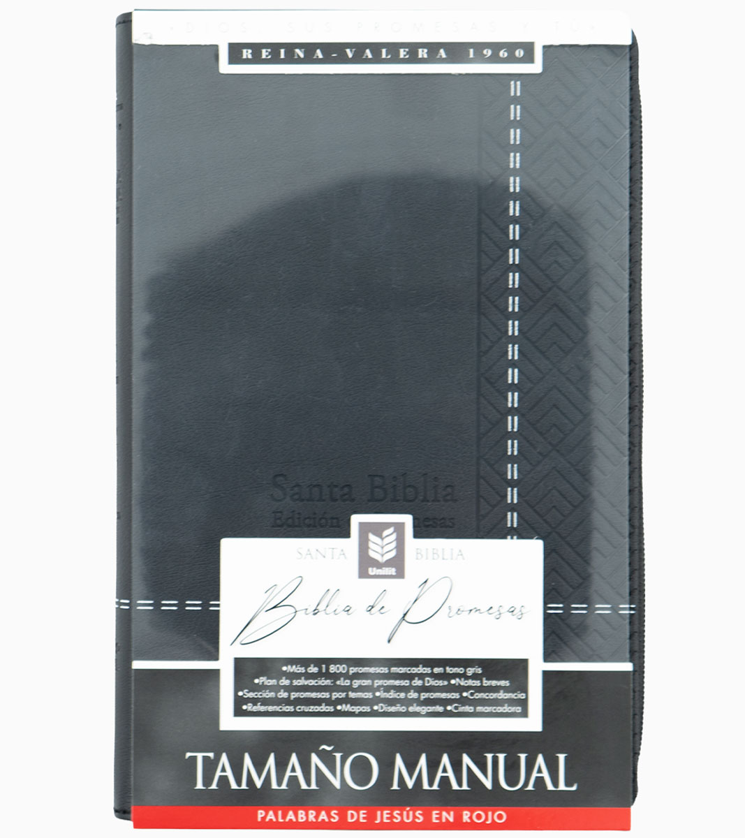 Santa Biblia de Promesas Tamaño Manual RVR 1960 – Letra Grande – Con Cierre e Indice – Imitacion Piel Negro