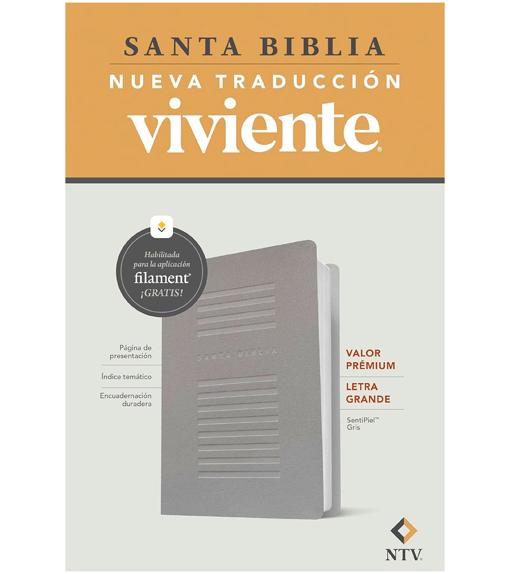 La Biblia valor prémium NTV, letra grande con Filament es la Biblia perfecta para leer y disfrutar la Palabra de Dios, ya que ofrece un tamaño de letra muy cómodo, además de un precio accesible. Esta Biblia es atractiva, portátil, fácil de leer y tiene la confiable y muy querida Nueva Traducción Viviente (NTV). También está habilitada con la innovadora aplicación «Filament Bible», que provee una gran cantidad de contenido adicional electrónico relacionado con cada página.